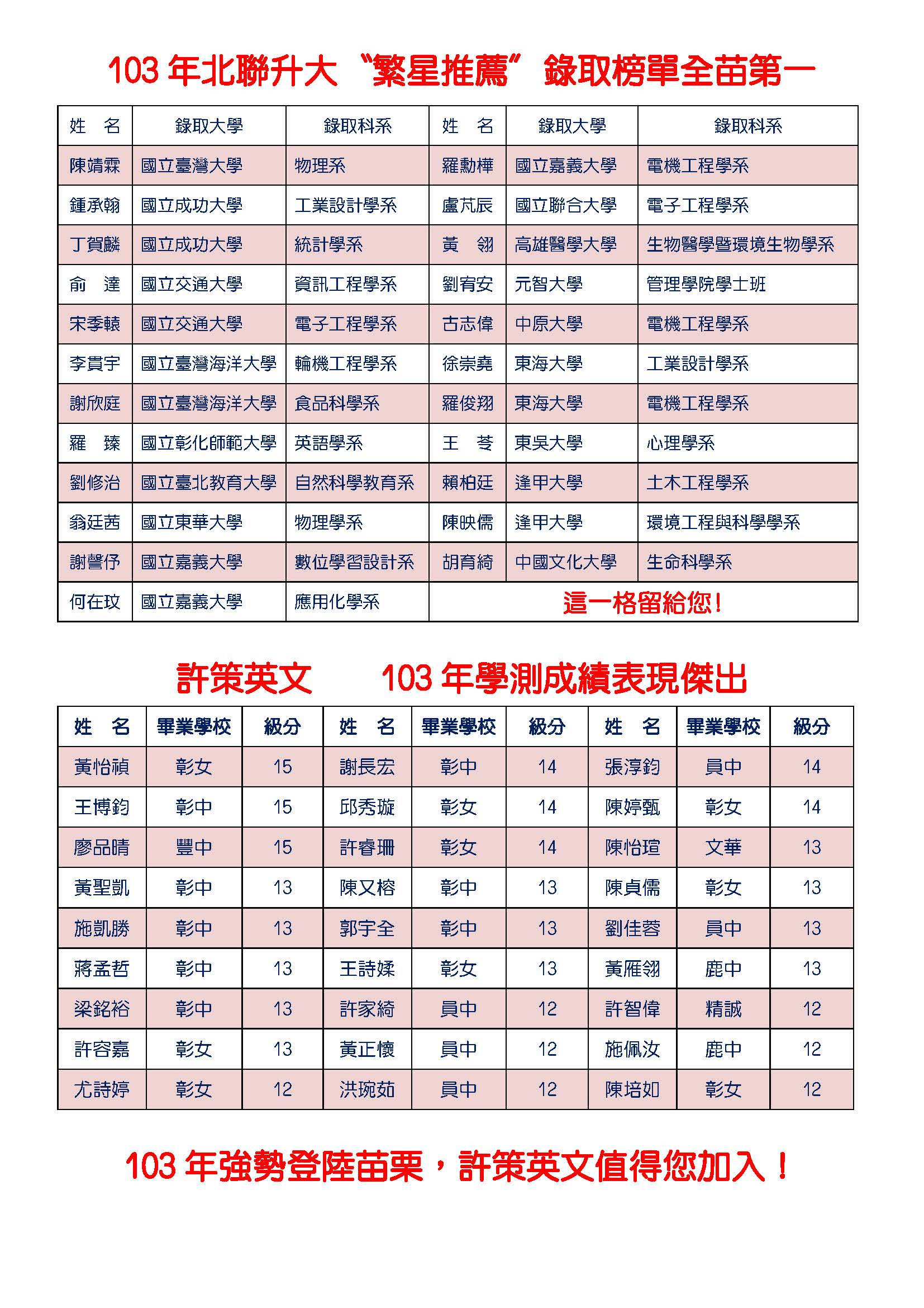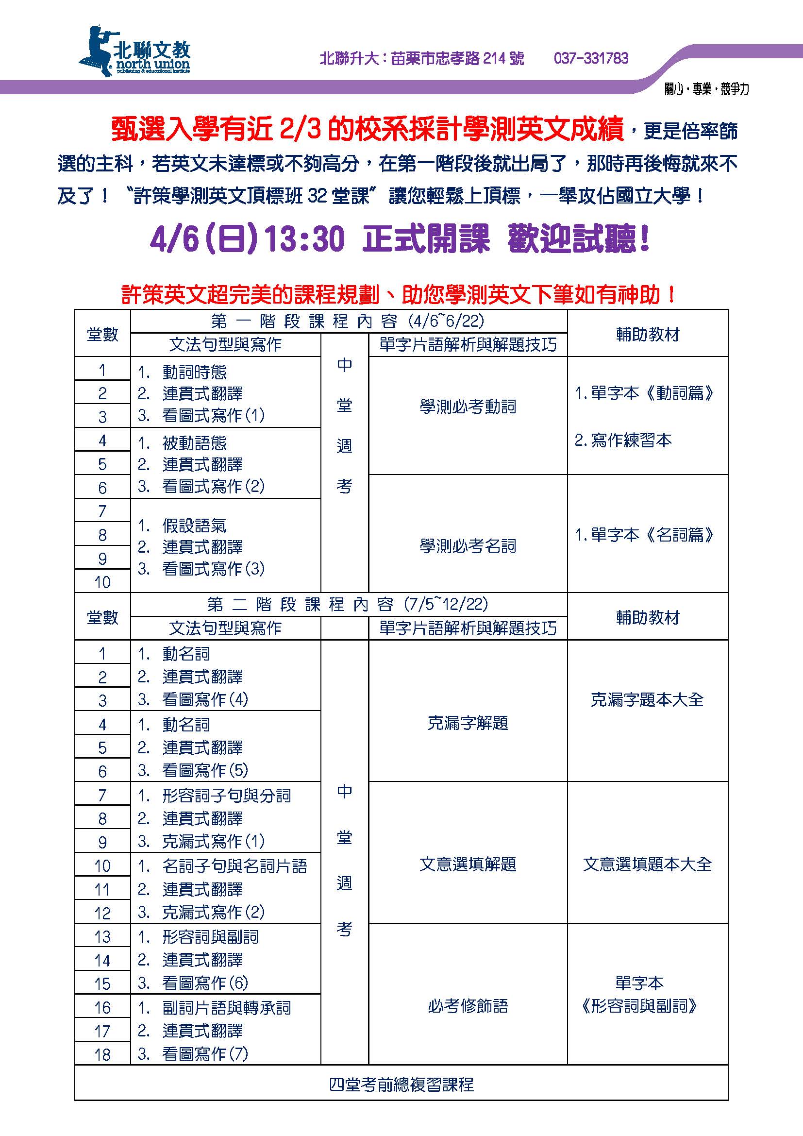 103學測英文複習班4/6(日)開課囉